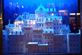 The store windows, on the other hand, are all about a snowy evening in New York City: